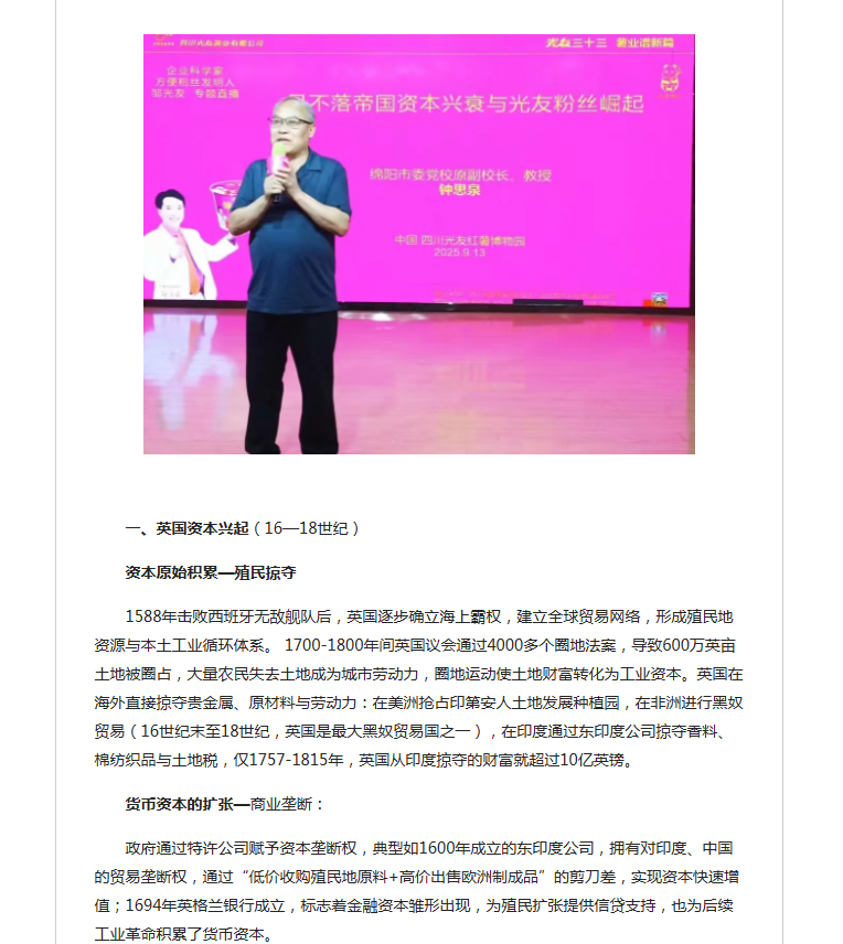 轉(zhuǎn)載四川經(jīng)濟新聞網(wǎng)-日不落帝國資本興衰與中國光友粉絲崛起