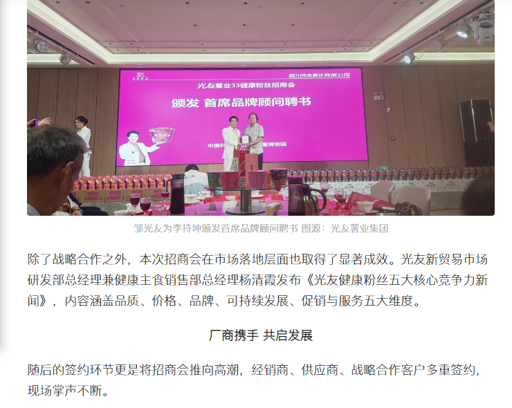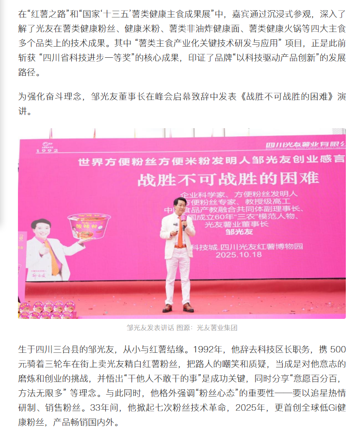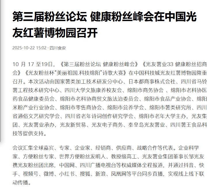 轉(zhuǎn)載四川食安今日頭條-第三屆粉絲論壇 健康粉絲峰會在中國光友紅薯博物園召開