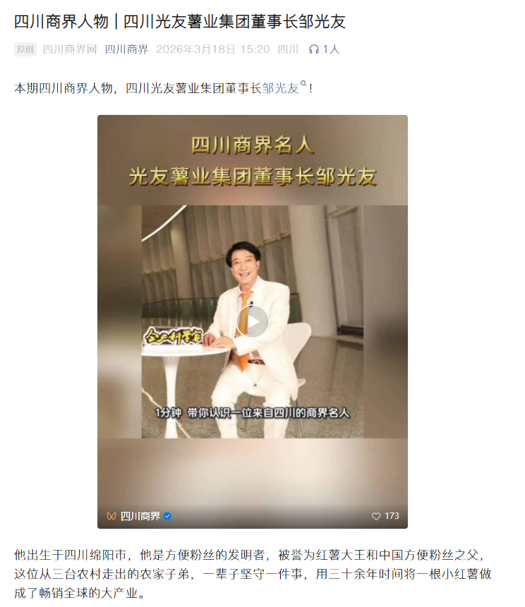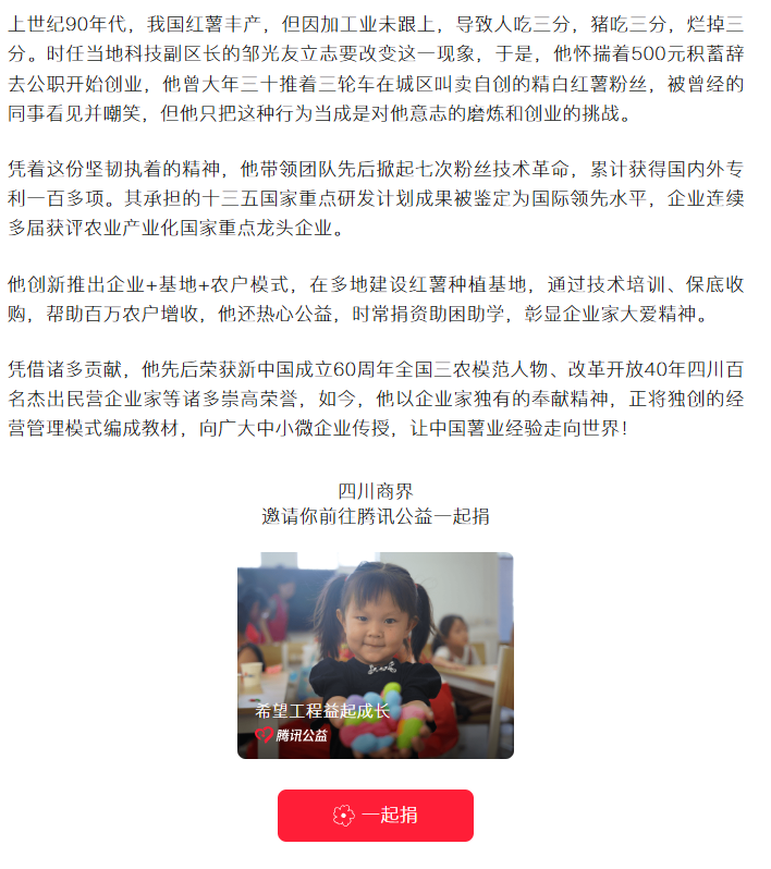 轉(zhuǎn)載四川商界網(wǎng) 四川商界人物|四川光友薯業(yè)集團董事長鄒光友