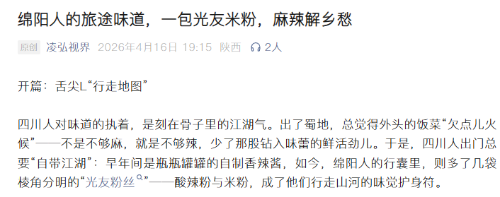 轉(zhuǎn)載凌弘視界 綿陽(yáng)人的旅途味道,一包光友米粉,麻辣解鄉(xiāng)愁