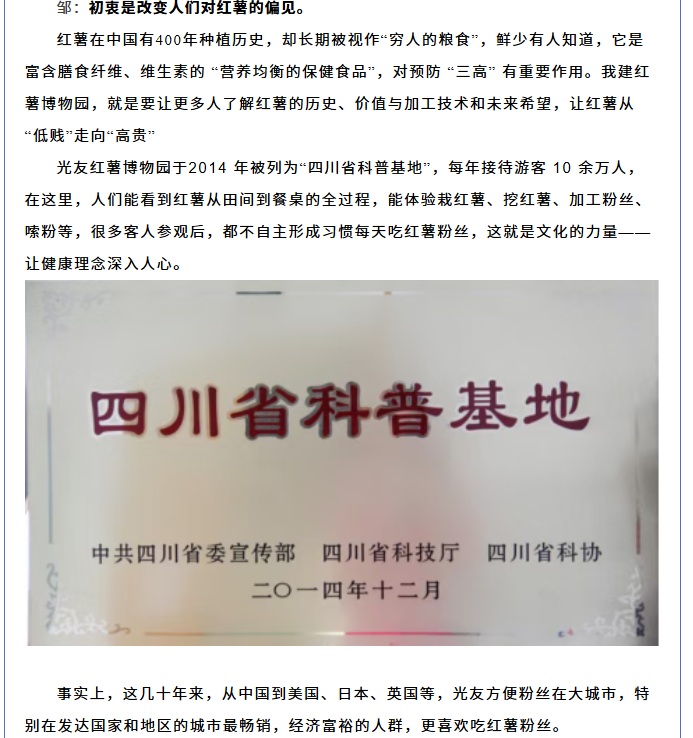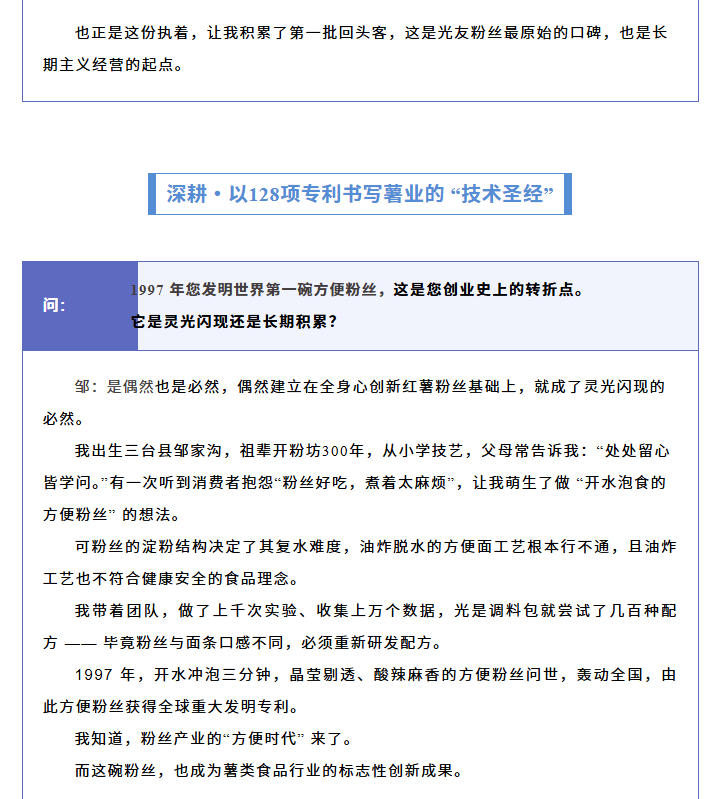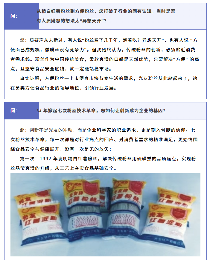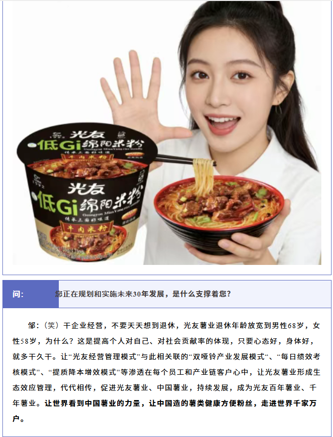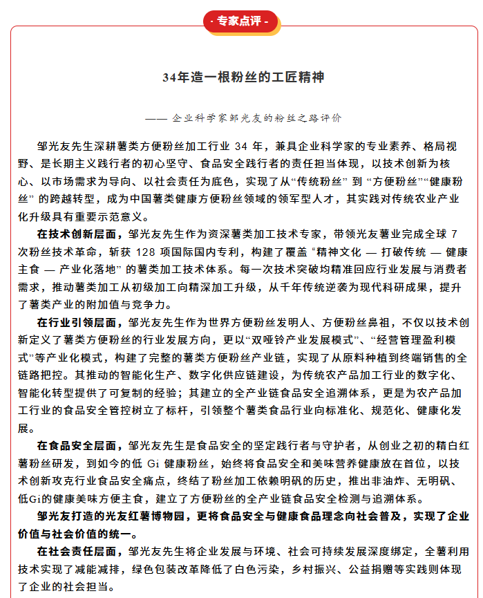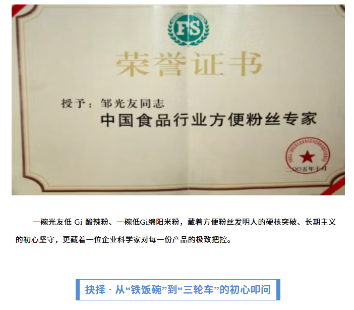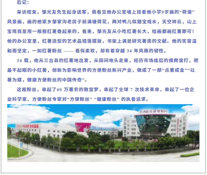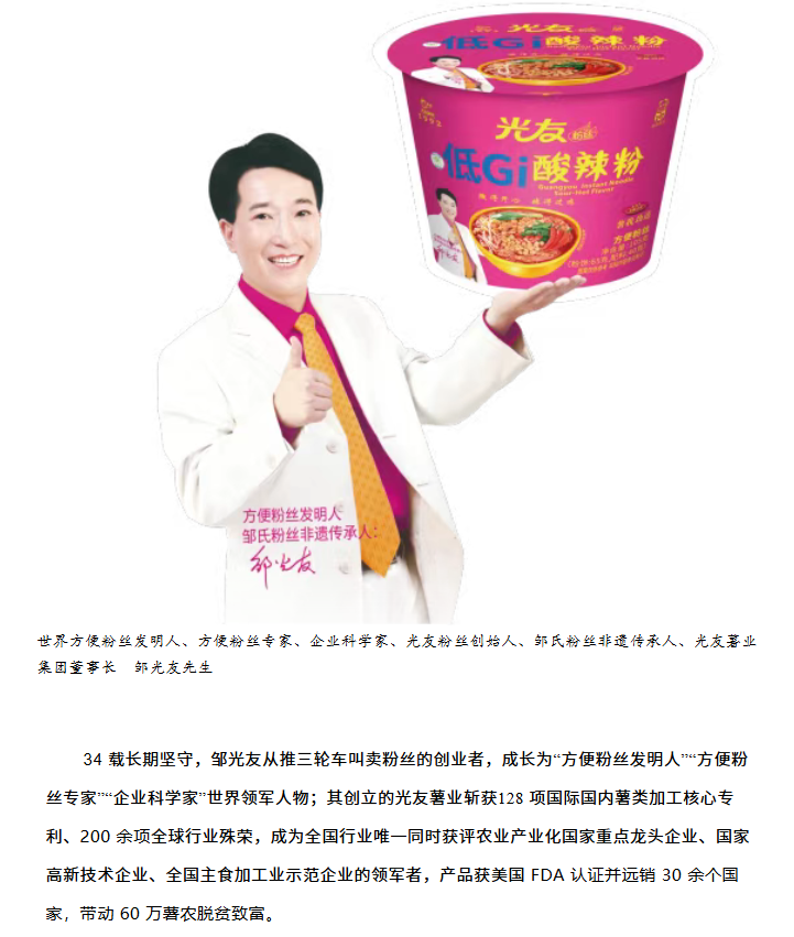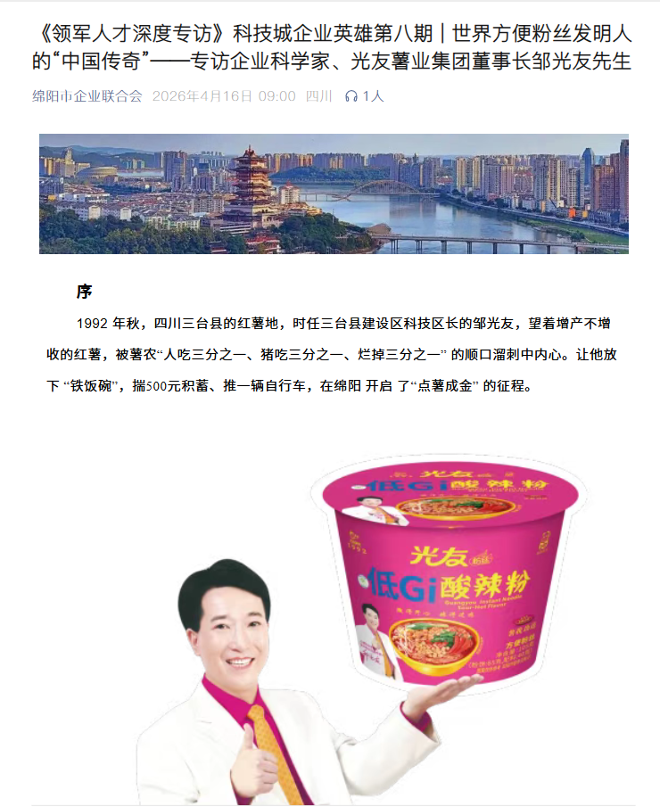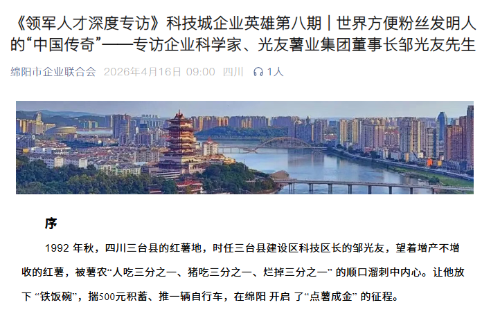 轉(zhuǎn)載綿陽(yáng)市企業(yè)聯(lián)合會(huì) 《領(lǐng)軍人才深度專訪》科技城企業(yè)英雄第八期 | 世界方便粉絲發(fā)明人的“中國(guó)傳奇”——專訪企業(yè)科學(xué)家、光友薯業(yè)集團(tuán)董事長(zhǎng)鄒光友先生